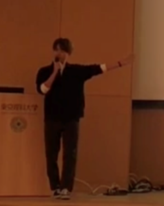 最初の英語でのショートプレゼンテーションでは50人以上のコース学生、コース加入希望の4年生と発表を希望するコース外の学生も口頭発表を行いました。本学英語教員には昨年に引き続きネイティブの視点より発表についての全体的なご講評をいただき、その中で発表の仕方を褒められた学生もいました。英語でプレゼンテーションを行う際の心得、発音についてのいくつかのポイントも教えていただきました。